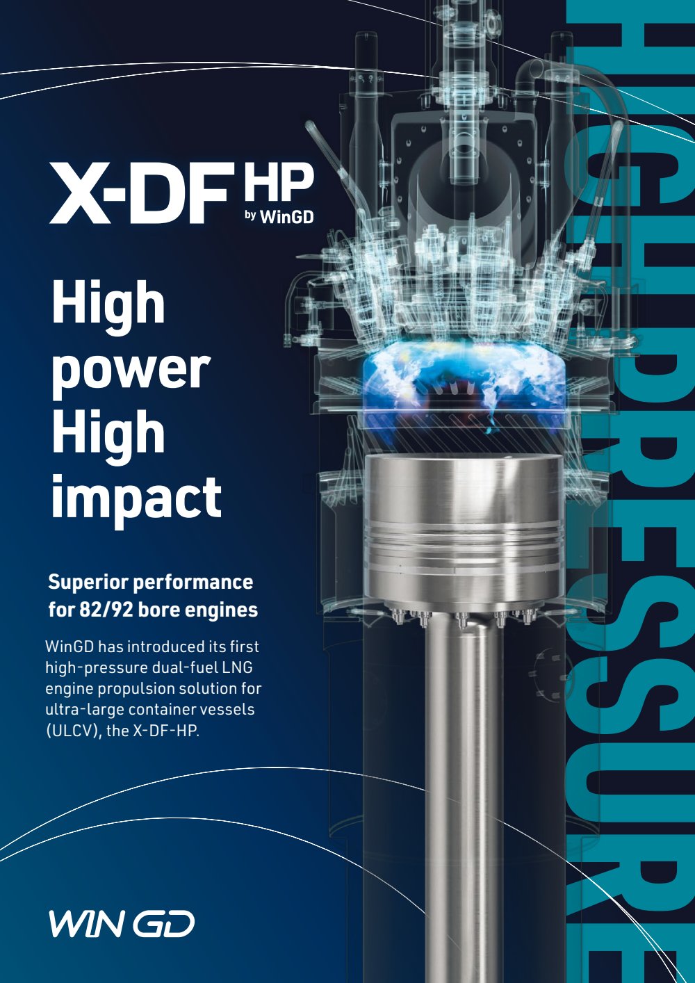 WinGD's X-DF-HP engine offers high efficiency and low emissions for ULCVs, featuring dual-fuel capability, compact design, and compliance with Tier III standards.
